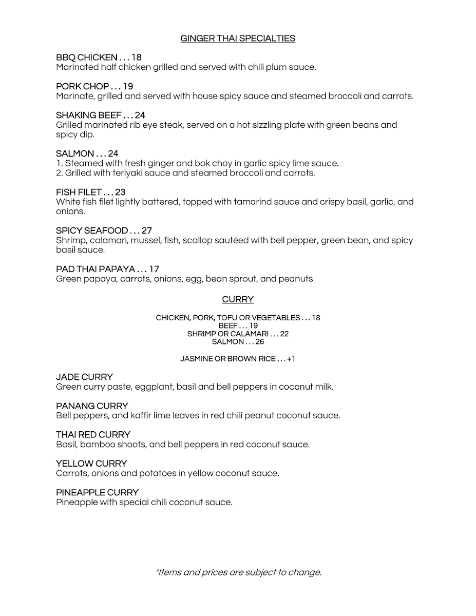 1. Steamed with fresh ginger and bok choy in garlic spicy lime sauce. 2. Grilled with teriyaki sauce and steamed vegetable